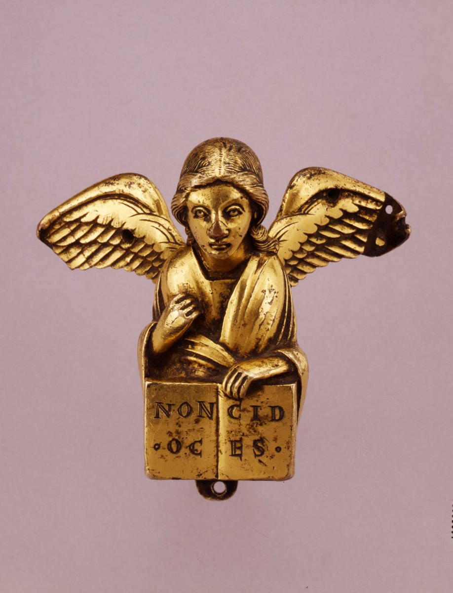 Figure d’applique : Ange en buste tenant les textes du sixième commandement